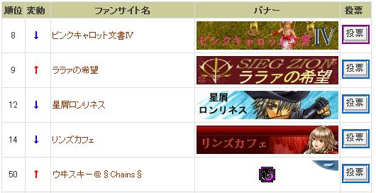 あー、ファンサイトランキング結果が出てましたねぇ。
